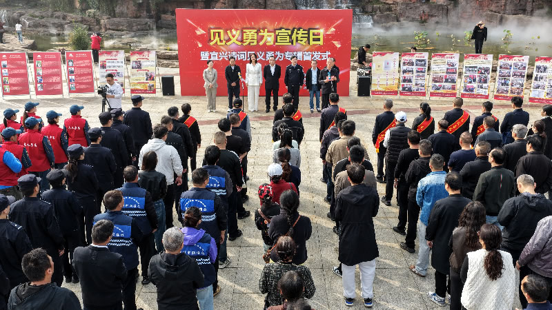 11月1日是第九届无锡市见义勇为宣传日。当天,宜兴市公安局、宜兴市见义勇为基金会联合宜兴市老干部大学在龙背山森林公园举行“正义之光·诗颂英雄”见义勇为诗词集发布暨见义勇为广场宣传活动,并邀请见义勇为人员、见义勇为志愿者等共同参与,向群众宣传见义勇为英雄事迹,普及见义勇为政策法规,进一步营造浓厚的见义勇为社会氛围。